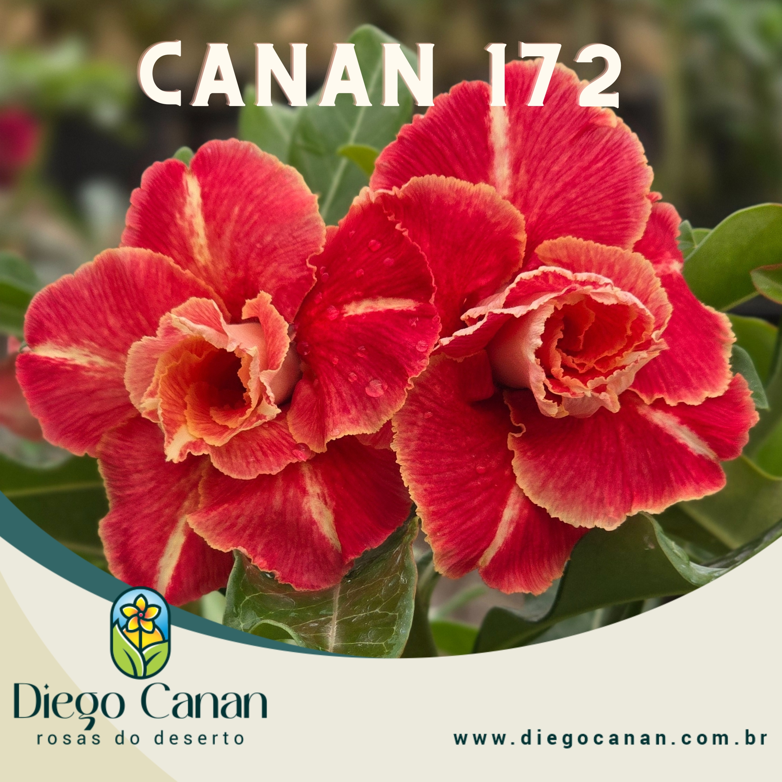 Enxerto da cor CANAN 172, flor de pétalas duplas, tom vermelho com amarelo indo pro laranja.