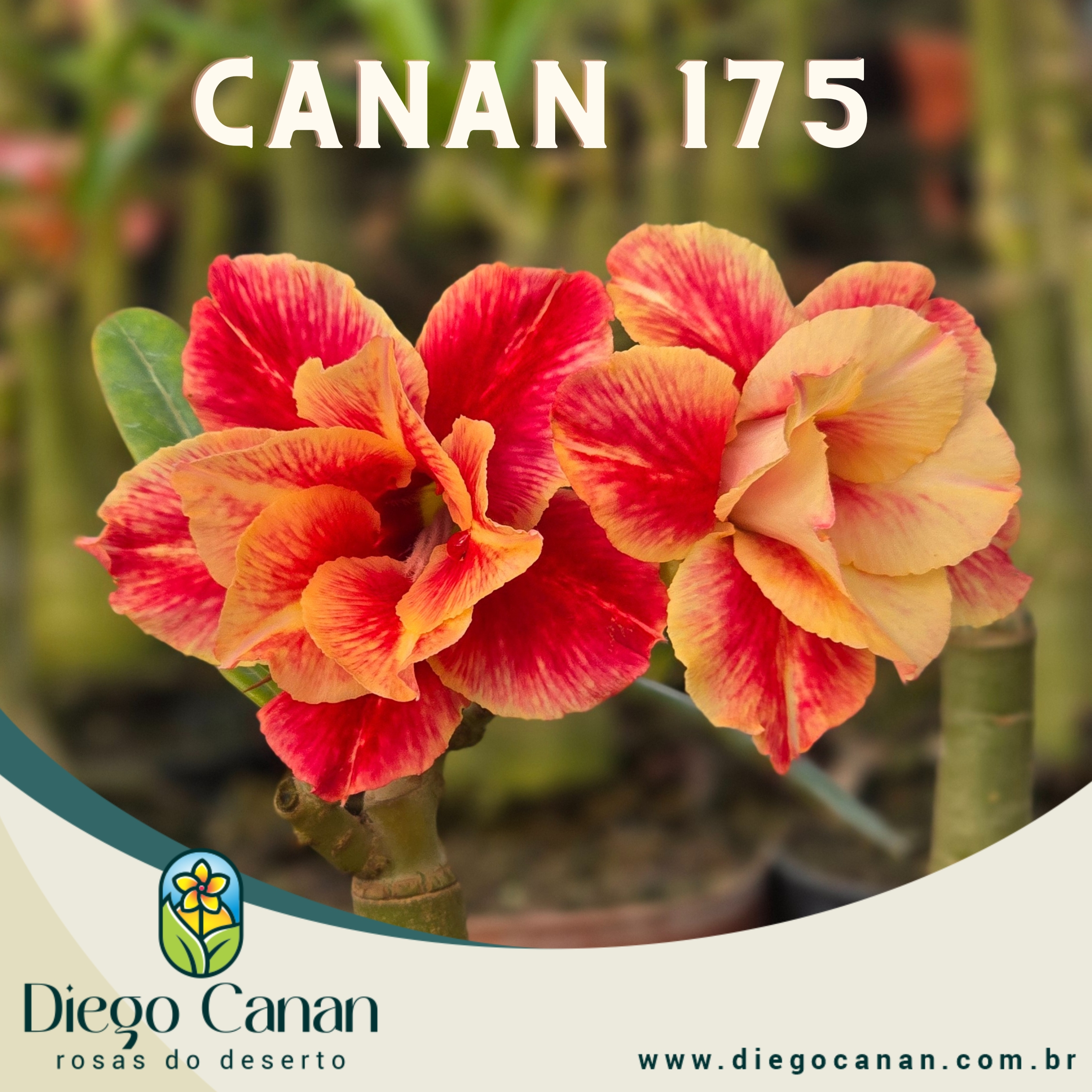 Enxerto da cor CANAN 175, flor de pétalas duplas, cor amarelo com vermelho, perfumada.