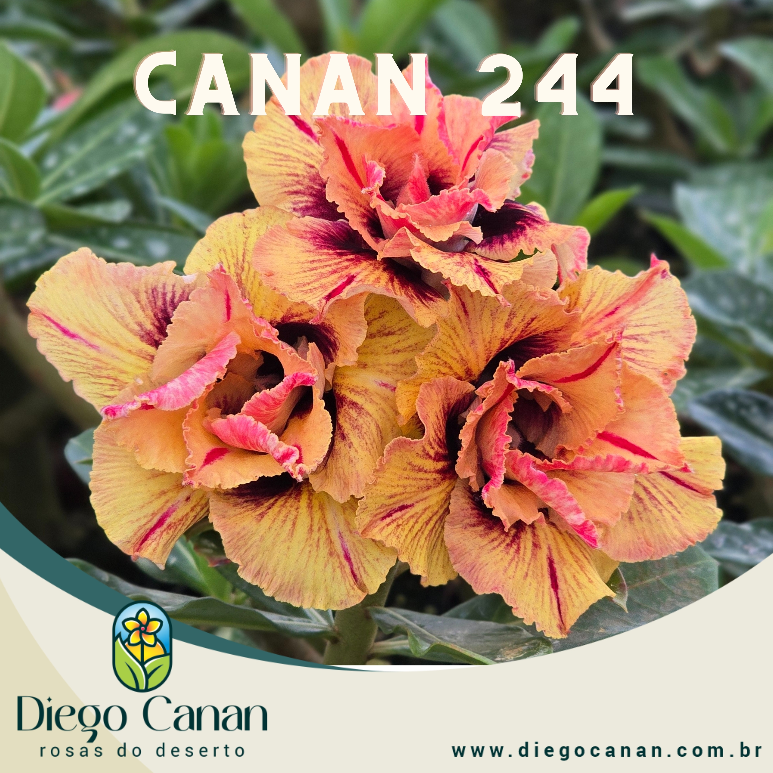Enxerto da cor CANAN 244, flor de pétalas triplas, em tons amarelo e vinho, rajada, com variação na intensidade da cor dependo de diversos fatores. PERFUMADA.