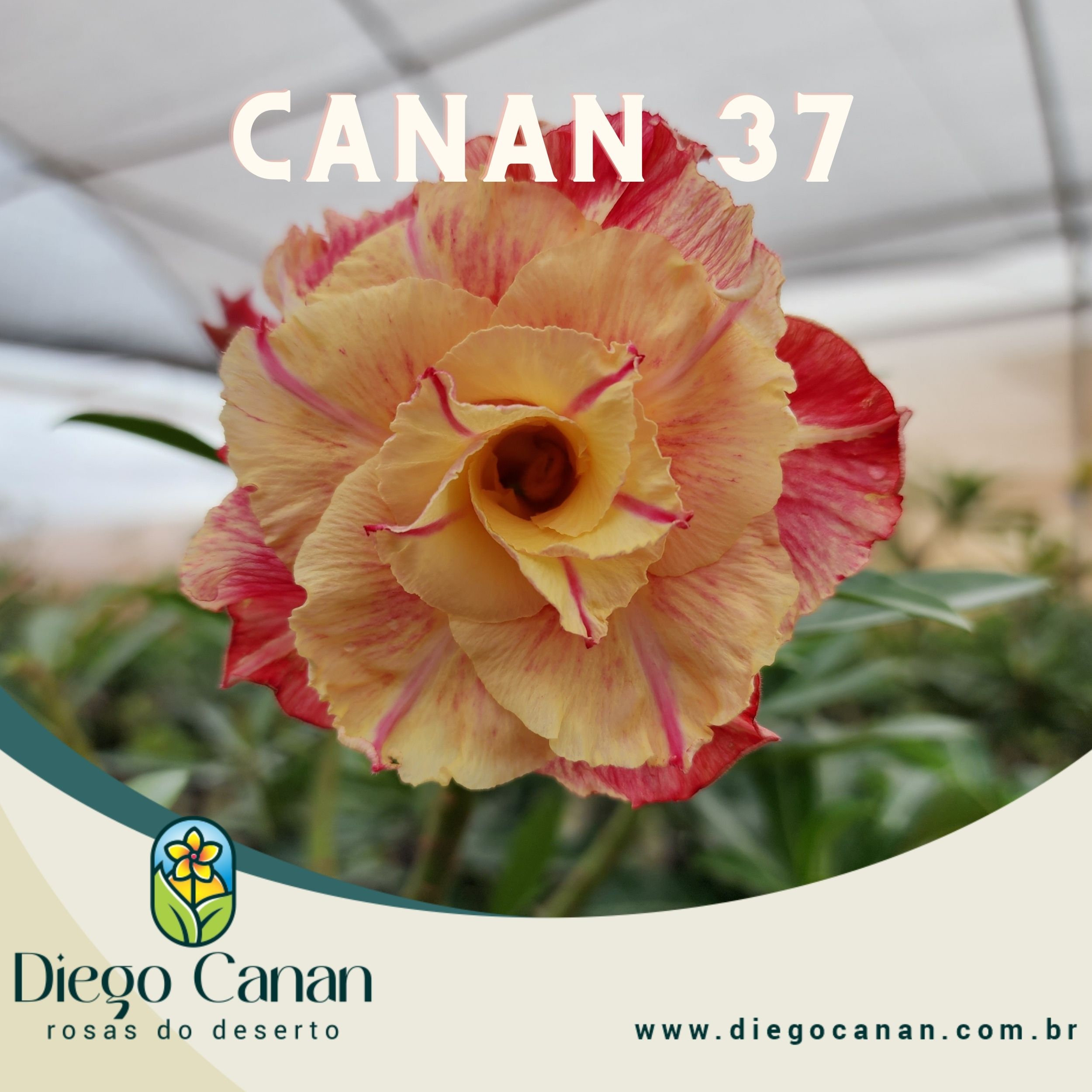 Enxerto da cor CANAN 37, uma flor tripla com aroma de cor amarela com a primeira camada vermelha clara mesclada de amarelo e as duas centrais amarelas mescladas de vermelho, podendo variar sua intensidade em cada florada, ótima para fazer enxertos e polinizações, passando facilmente seus genes a frente.