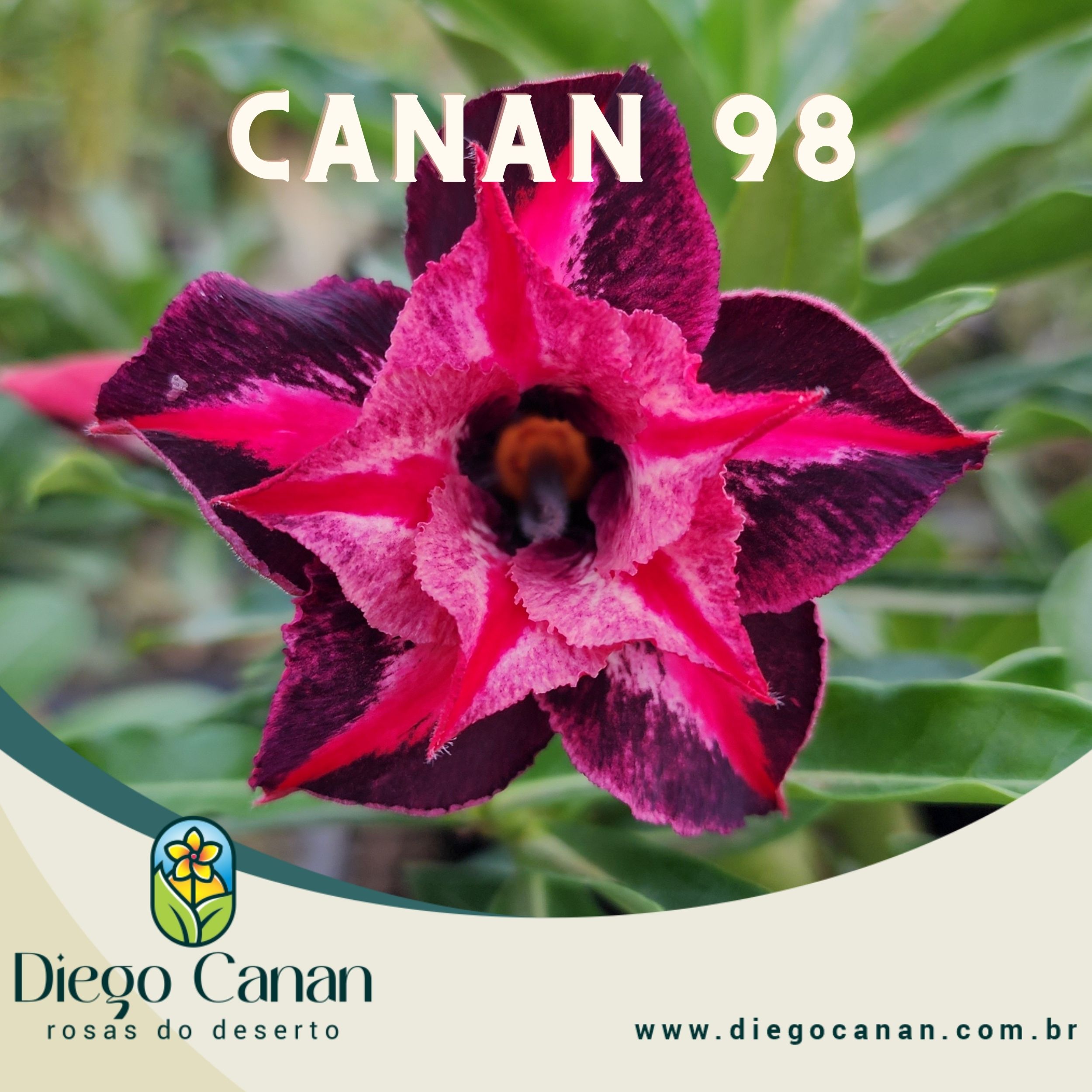 Enxerto da cor CANAN 98, uma flor dupla de cor roxa com a primeira camada mais escura mesclada de rosa cintilante e a central mais clara, podendo variar sua intensidade em cada florada, ótima para fazer enxertos e polinizações, passando facilmente seus genes a frente.